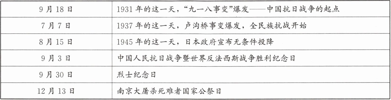 B. 材料二中的这些纪念日是为了让我们铭记仇恨,缅怀先烈,珍惜和平。