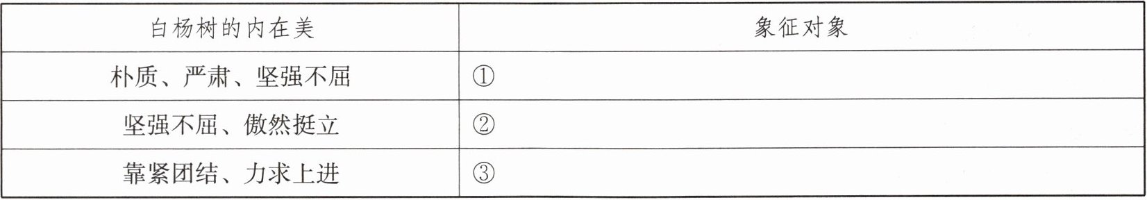 (2)本文是一篇____的散文,作者运用____手法,借白杨树不平凡的形象,赞美了____,礼赞了他们朴质、坚强、团结向上的精神,抒发了对他们的崇敬和赞美之情。