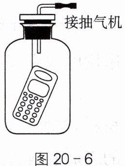 在密封的透明玻璃瓶内,放了一个处于待机状态的手机,用另一个手机拨打里面的手机,听到里面手机的铃声,同时看到手机屏幕上显示的来电号码。接着用抽气机将玻璃瓶内的空气尽可能抽去,继续拨打里面的手机,虽然听不到里面手机的铃声,但仍能看到手机屏幕上显示的来电号码。