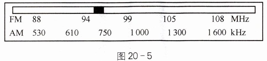 7. 图 20 - 5 是收音机的调台面板,当向右调指针(图中黑块)时,接收到的电磁波(
