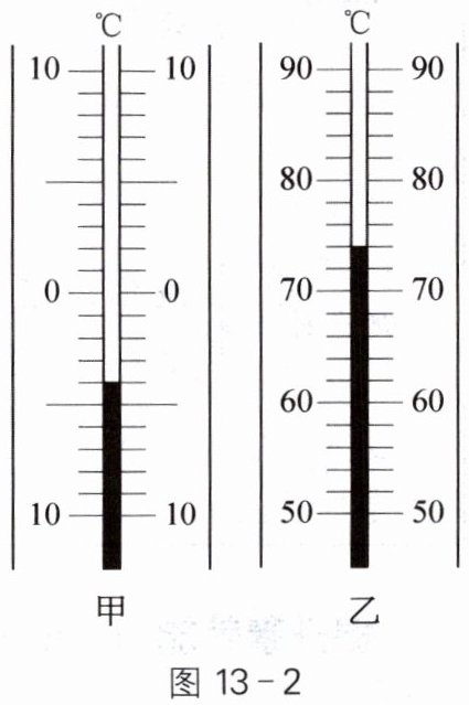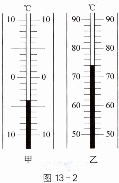 5. 读出图 13 - 2 所示的甲、乙温度计的温度值,甲是