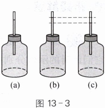 6. 如图 13 - 3(a)所示,小明在小瓶里装满带颜色的水,在橡胶塞上插进一根细玻璃管,用橡胶塞塞住瓶口做成了简易温度计,该温度计是利用液体