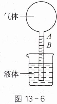 7. 如图 13 - 6 所示,一根玻璃管一端开口,另一端带有核桃大的玻璃泡,经过一定的操作后,把开口端竖直插入烧杯中,在玻璃泡里封闭一定质量的气体。利用这个装置可以测量温度,其原理是