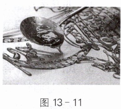 6. “糖画”是我国一种传统民间手工艺,以糖为材料来制作。如图 13 - 11 所示,先把糖加热成糖汁,在绘制造型时,用汤勺舀起糖汁,在石板上飞快地来回浇淋。画出各种造型后,用小铲刀将糖画铲起,粘在竹签上即可。关于“糖画”制作过程中糖的吸、放热情况,下列说法正确的是(
