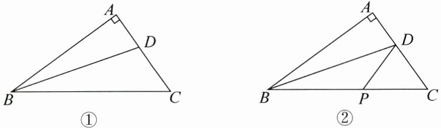 (3)如图②,点$ P $在$ BC $边上,$ \angle ADB = \angle CDP $,将点$ P $和(1)画出的点$ E $相连,请直接写出$ \angle BPE $和$ \angle CPD $的关系式: