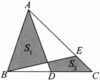 9. 如图,在$\triangle ABC$中,$D$是边$BC$的中点,$CE=\frac{1}{4}AC$,$\triangle ABC$的面积是$4$,则下列结论正确的是(
