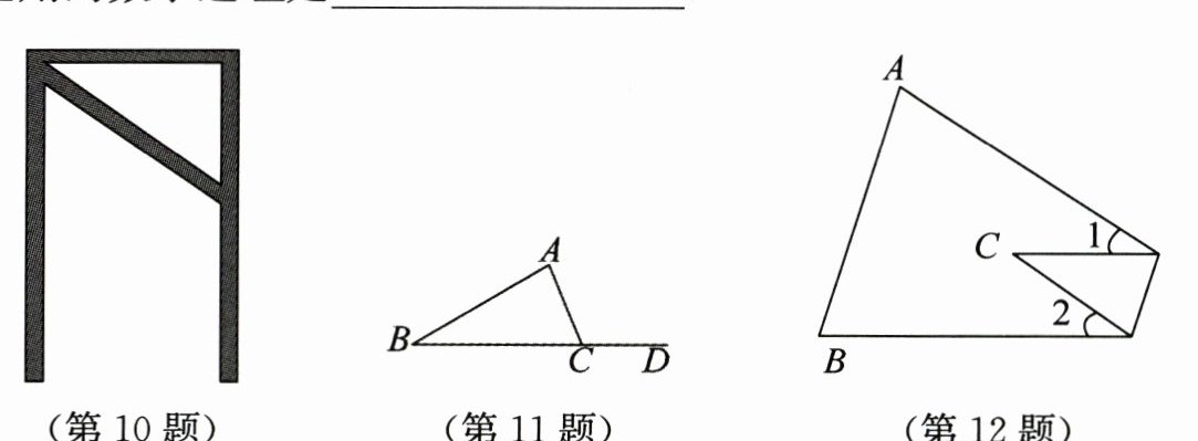 10. 如图,木匠在做门框时为防止门框变形,用一根木条斜着钉好,这样门框就固定了,所运用的数学道理是