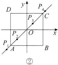 ④当点P'(t,t)在正方形ABCD外部且0 ≤ t ≤ 3时,如图②点P₄,