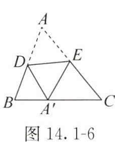 8. 如图14.1-6,在△ABC中,∠A= 60°,将△ABC沿DE翻折后,点A落在BC边上的点A'处. 如果∠A'EC= 70°,那么∠A'DE的度数为