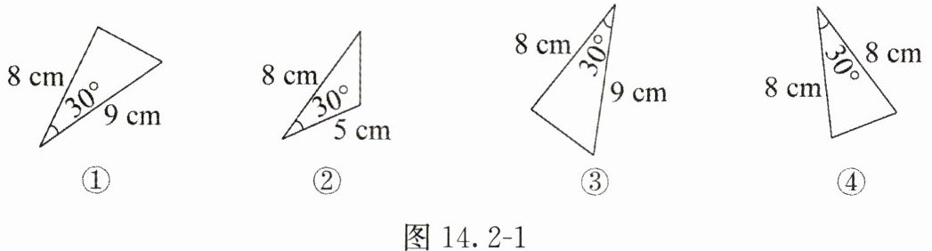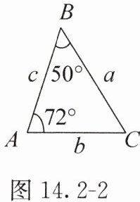 2. 如图14.2 - 2所示,a,b,c分别表示△ABC的三边长,则与△ABC一定全等的是(