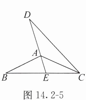 5. 如图14.2 - 5,CA平分∠DCB,CB = CD,DA的延长线交BC于点E. 若∠EAC = 49°,则∠BAE的度数为