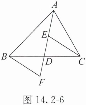 6. 如图14.2 - 6,AD是△ABC的中线,E,F分别是AD和AD延长线上的点,且DE = DF,连接BF,CE. 有下列说法:①CE = BF;②△ABD≌△ACD;③BF//CE;④△BDF和△CDE的面积相等. 其中正确的是