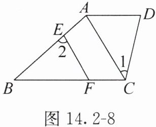 8. 如图14.2 - 8,∠1 = ∠B,点E,F分别在AB,BC上,BE = CD,BF = CA,连接EF.