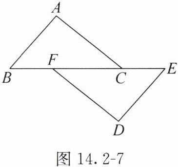 7. 如图14.2 - 7,已知点B,F,C,E在一条直线上,AB = DE,AB//DE,BF = EC. 求证AC//DF.