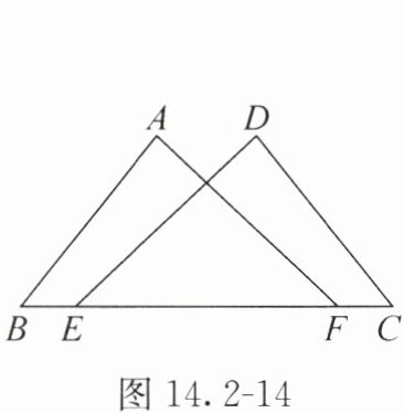 3. 如图14.2 - 14,点$E$,$F在BC$上,$BE = CF$,$∠B = ∠C$,添加一个条件,不能证明$△ABF ≌ △DCE$的是(