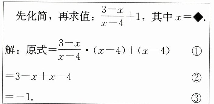 13. 如图的解题过程中,第①步出现错误,但最后所求的值是正确的,则图中被涂污的$x$的值是