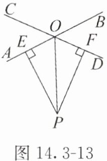 1. 如图14.3-13,直线AB,CD相交于点O,PE⊥AB,PF⊥CD,垂足分别为E,F. 若PE= PF,且∠AOC= 50°,则∠EOP的度数为(