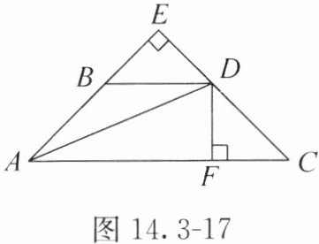 6. 如图14.3-17,DE⊥AB交AB的延长线于点E,DF⊥AC,垂足为F,且BE= CF,DB= DC. 求证:AD平分∠BAC.