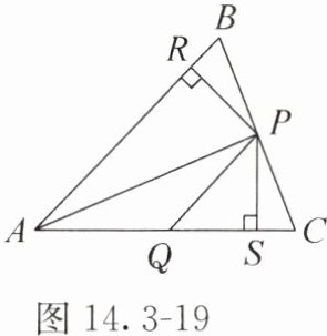 8. 如图14.3-19,在△ABC中,P为BC上一点,PR⊥AB,垂足为R,PS⊥AC,垂足为S,PR= PS,连接AP,Q为边AC上的点,连接PQ,且∠CAP= ∠APQ. 有下列结论: