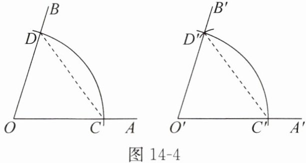 (1) 如图 14-4,以点$O$为圆心,任意长为半径作弧,分别交$OA$,$OB于点C$,$D$;