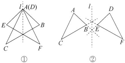 6. 如图 15.2 - 3,在图①,②中,$ \triangle ABC $ 与 $ \triangle DEF $ 都关于直线 $ l $ 对称,请在图中分别画出对称轴 $ l $.