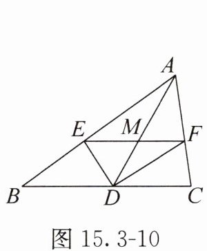 5. 如图15.3 - 10,在$\triangle ABC$中,$D是BC$上的一点,$DE平分\angle ADB$,$DF平分\angle ADC$,且$EF// BC$。若$EF交AD于点M$,$EF = 12$,则$DM = $