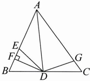 8. 如图, $ AD $ 是 $ \triangle ABC $ 的角平分线, $ DF \perp AB $,垂足为 $ F $, $ DE = DG $, $ \triangle ADG $ 和 $ \triangle AED $ 的面积分别为 $ 50 $ 和 $ 39 $,则 $ \triangle EDF $ 的面积为(