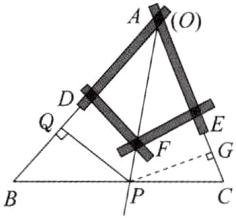 (1)如图②,将仪器放置在 $ \triangle ABC $ 上,使点 $ O $ 与顶点 $ A $ 重合,点 $ D $, $ E $ 分别在边 $ AB $, $ AC $ 上,沿 $ AF $ 画一条射线 $ AP $,交 $ BC $ 于点 $ P $. $ AP $ 是 $ \angle BAC $ 的平分线吗?请判断并说明理由.