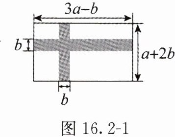 7. 如图16.2 - 1,为了绿化校园,学校准备在一个长为$(3a - b)m$,宽为$(a + 2b)m的长方形草坪上修建两条宽为b\ m$的通道,求剩余草坪的面积.