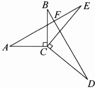 16. 如图, $ AC \perp BC $, $ DC \perp EC $, $ AC = BC $, $ DC = EC $, $ AE $ 与 $ BD $ 相交于点 $ F $.