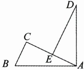17. 如图, $ A $, $ E $, $ C $ 三点在同一条直线上,且 $ \triangle ABC \cong \triangle DAE $, $ AB $ 和 $ DA $ 是对应边, $ \angle B $ 和 $ \angle EAD $ 是对应角.