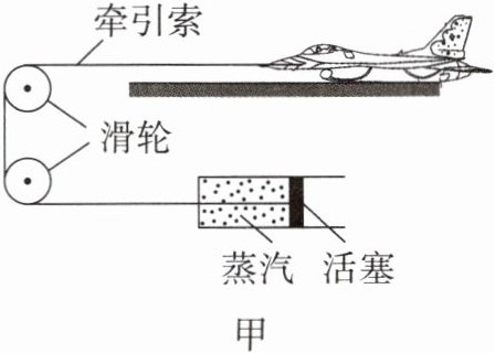 5. 图甲为航母上简化的蒸汽弹射装置,能带动舰载机在2s内达到起飞速度。图乙为汽油机的工作冲程。下列说法不正确的是(