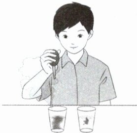如图所示,分别在两个相同的玻璃杯中装入等质量的热水和冷水。用相同的滴管同时分别向两个杯子中滴入一滴墨水,你会观察到装有