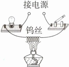 3. 用电源、灯泡、导线、开关和钨丝组成串联电路,如图所示。闭合开关,小灯泡发光。再用酒精灯对钨丝进行加热,会发现灯泡亮度变暗,由此你可以得出的结论是