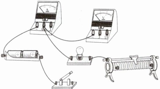 1. 如图所示,请将滑动变阻器接入电路,要求:滑动变阻器的滑片向左滑动时灯泡变亮。