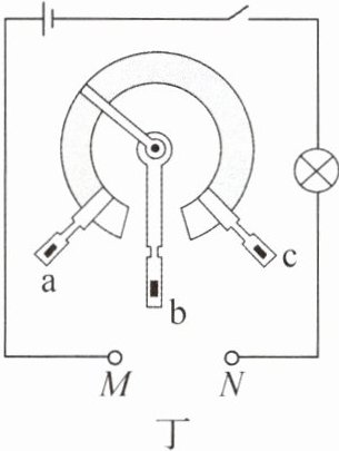 (2)该同学从网上买了一个规格合适的电位器,来制作简易调光台灯。如图丁所示,已知转动电位器旋钮时,滑片在电阻丝上同向滑动,若要使旋钮顺时针转动时台灯变亮,则应将电位器的