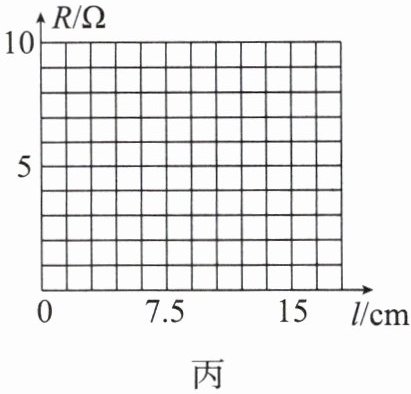 ①请在图丙所示的坐标纸上描点,并画出铅笔芯接入电路的电阻的平均值$R$和铅笔芯接入长度$l$的关系图像。