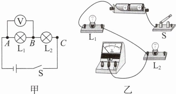 9. 小高探究串联电路的电压规律的实验电路图如图甲所示。