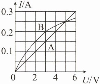 (3)若将A、B串联接在某电源,电路中电流是$0.15\ A$,则电源电压是$5\ V$。