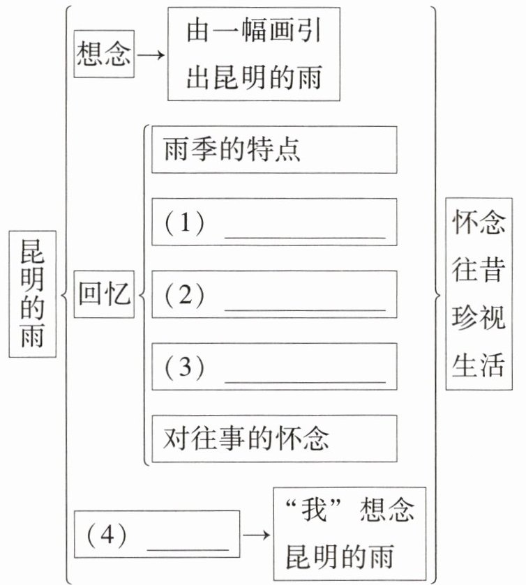 7. 课文的第2段和第11段都只有“我想念昆明的雨”这一个句子,试从内容、结构和表达效果等角度分析这两段在文中的作用。______