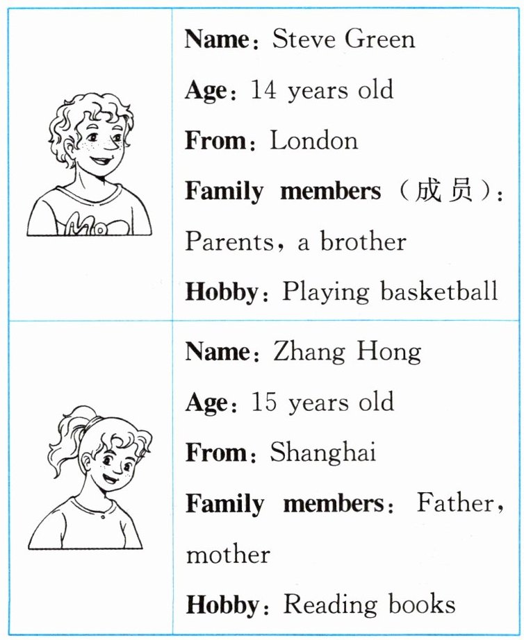 1. He is 13. 2. He lives in Wuhan,Hubei. 3. He is in Class Two, Grade Seven. 4. He often plays basketball with his classmates. 5. Because he likes to help others.