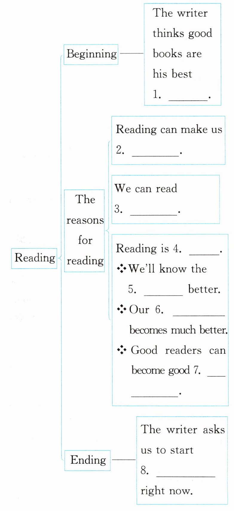 任务一: 1. friends 2. happy 3. anywhere 4. useful 5. world 6. schoolwork 7. writers 8. reading 任务二:1~2 BC