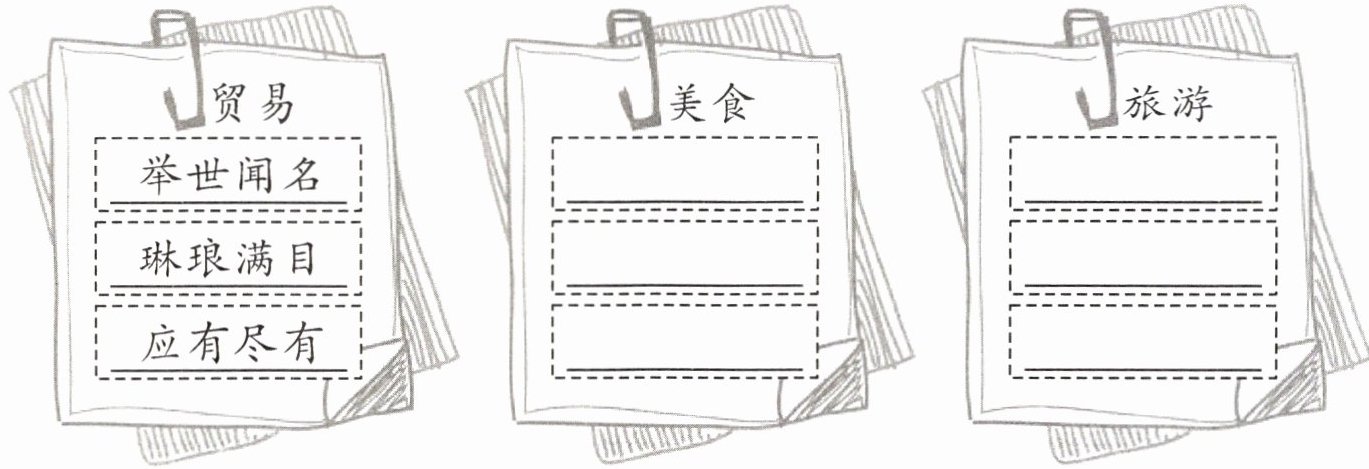 4. 照样子分类摘抄好词,并选一张好词卡介绍自己的家乡。
