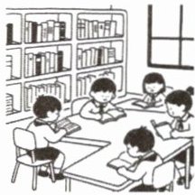 with my friend in the library.☐ sing