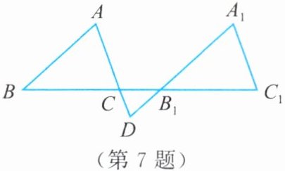 7. 已知:如图,点$B$,$C$,$B_1$,$C_1$在同一条直线上,$AC与A_1B_1的延长线相交于点D$,$AB = A_1B_1$,$AC = A_1C_1$,$BB_1 = CC_1$。求证:$\angle A = \angle D$。