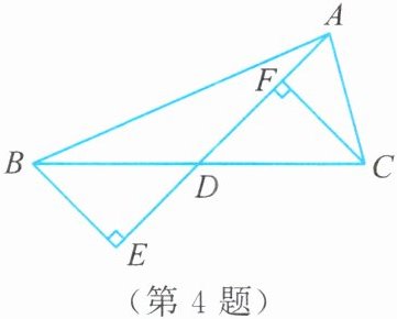 4. 已知:如图,在$\triangle ABC$中,$D是BC$的中点,过点$B作BE\perp AD$,交$AD的延长线于点E$,过点$C作CF\perp AD于点F$。求证:$\triangle BED\cong\triangle CFD$。