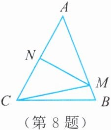 如图,在![△ABC ]中,边![AC ]的垂直平分线分别交![AB ,AC ]于点![M ,N ]。已知![△ABC ]与![△BCM ]的周长分别为22 cm和14 cm,求![CN ]的长。