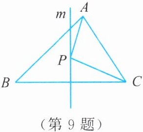连结BP。因为直线m是△ABC中BC边的垂直平分线,所以BP=CP,所以△ACP的周长=AP+PC+AC=BP+AP+AC≥AB+AC。所以当A,B,P 三点共线时,△ACP的周长最小,即△ACP的周长的最小值为AB+AC=11。