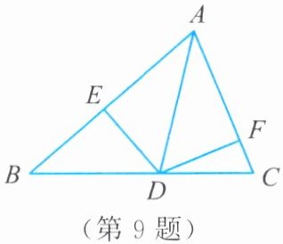9. 如图,$AD是\triangle ABC中\angle BAC$的平分线,$DE\perp AB于点E$,$DF\perp AC于点F$。若$S_{\triangle ABC} = 7$,$DE = 2$,$AB = 4$,则$AC$的长是