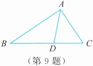 9. 如图,在$\triangle ABC$中,$AD是\angle BAC$的平分线,试说明$\frac{AB}{AC}= \frac{BD}{CD}$。